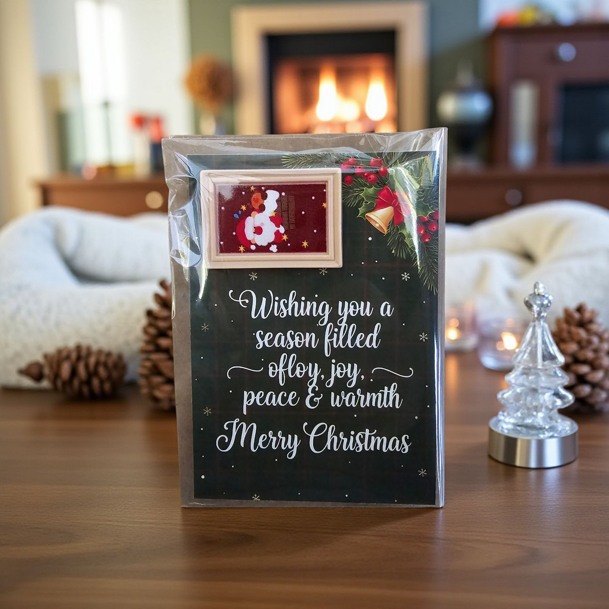 Festive Christmas Card with Refrigerator Magnet - Joy, Peace & Warmth Gift Set