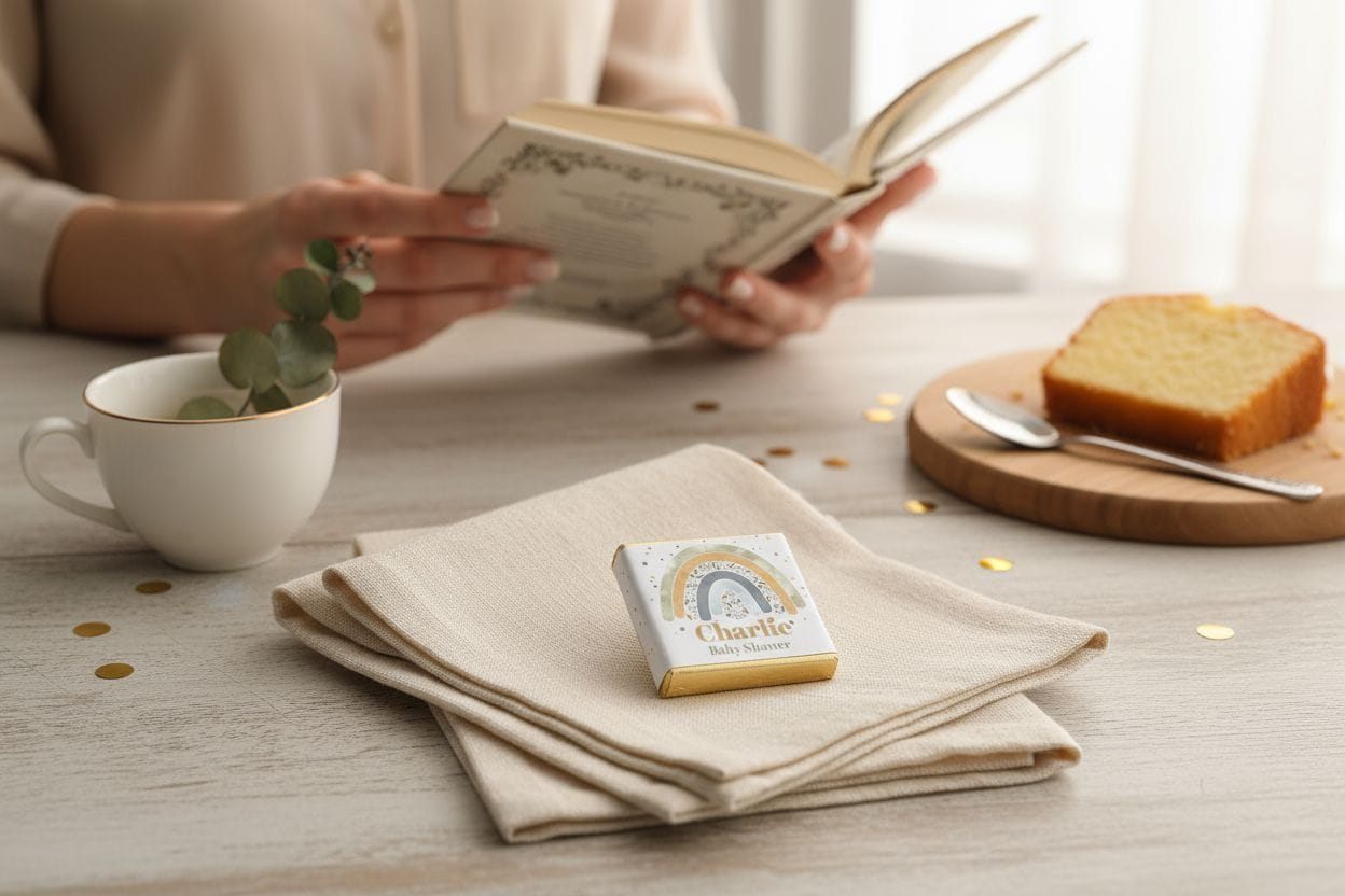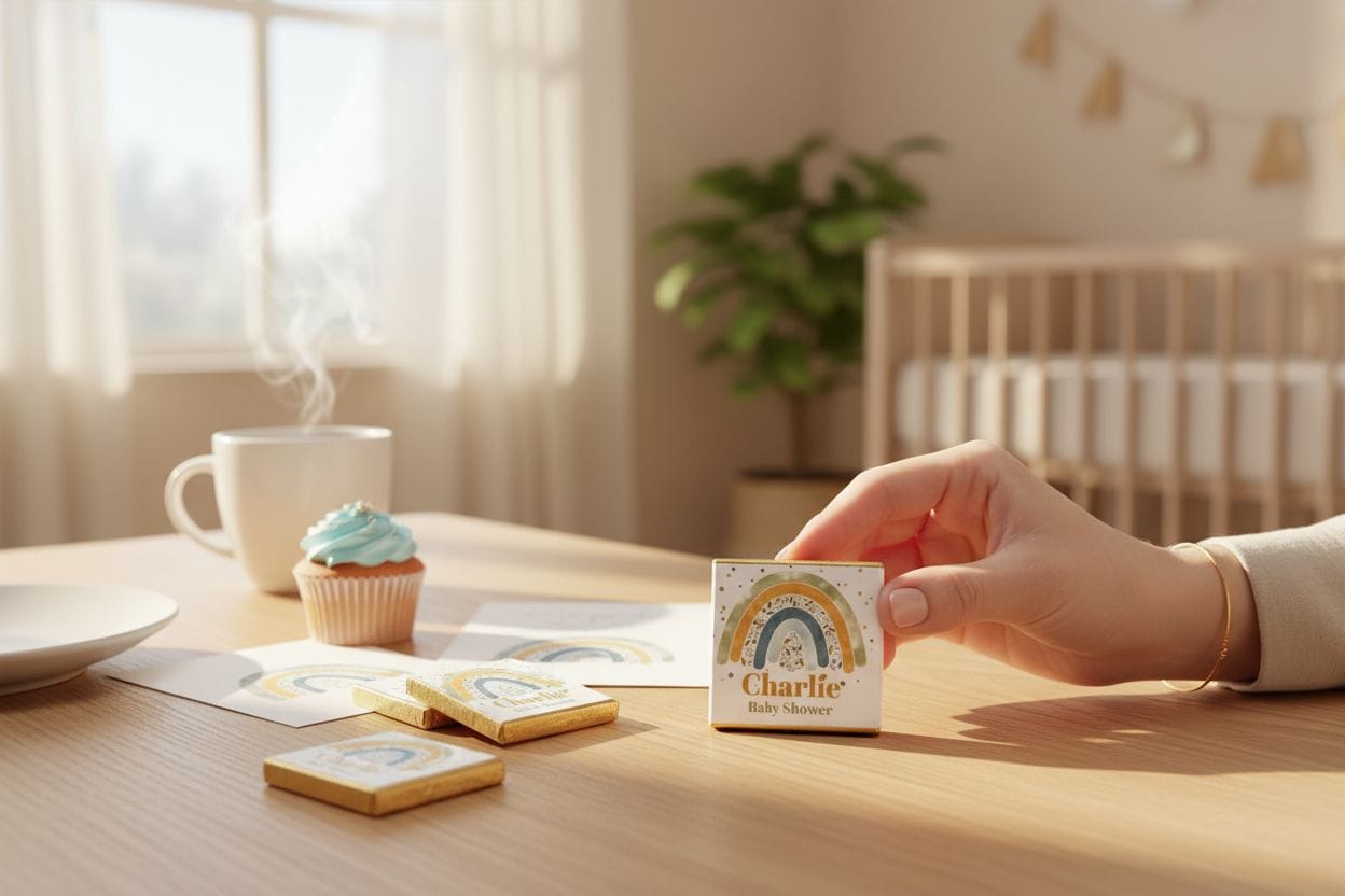Add a modern and charming touch to your celebration with our personalized boho rainbow chocolates!