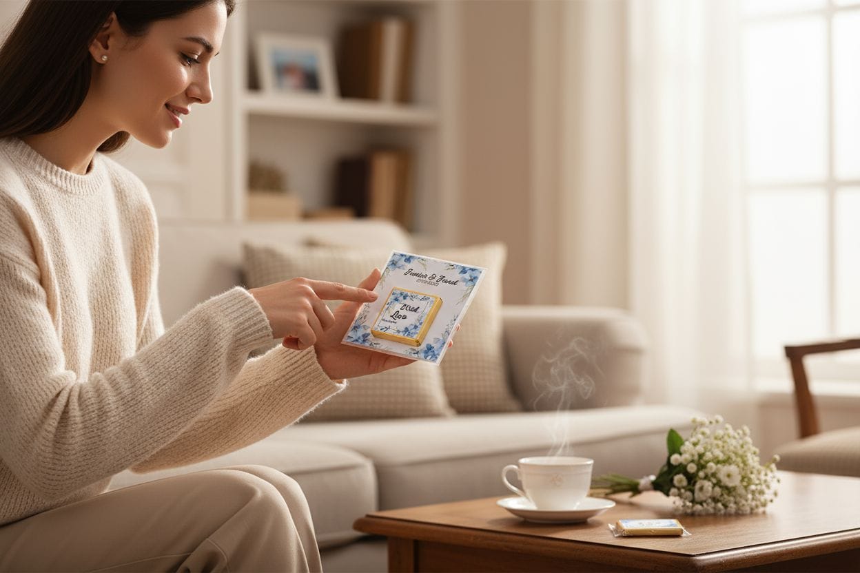 Personalized "Forget-Me-Not" Blue Floral Card and Chocolate